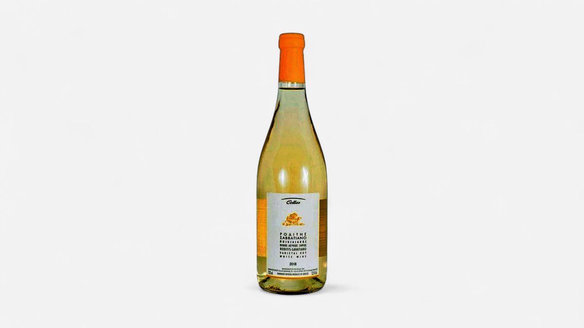 Kvalitní řecké víno, Roditis Savatiano bílé víno suché. Zlatá barva s odlesky zelené, jemná vůně květin, výraznější chuť. Hodí se k drůbeži a sýrům.