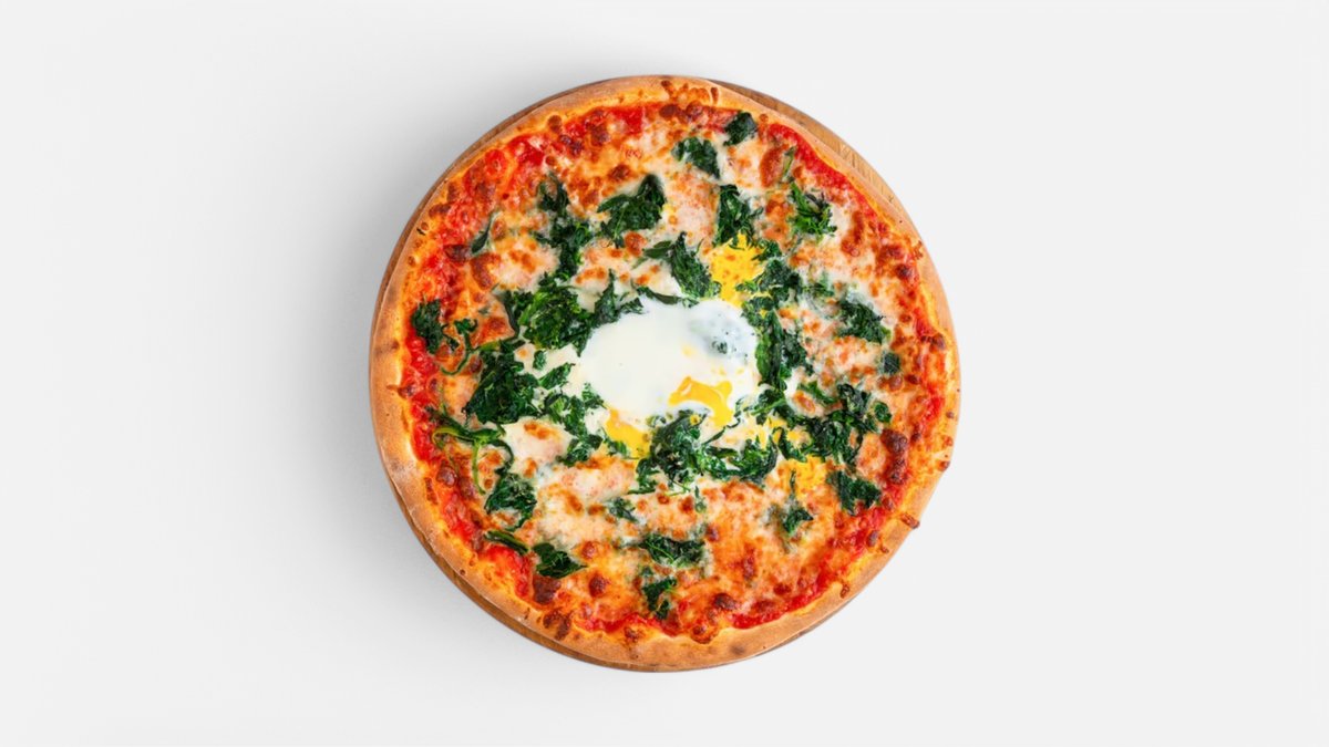 tomato, mozzarella, anglická slanina, špenát, česnek, vejce
