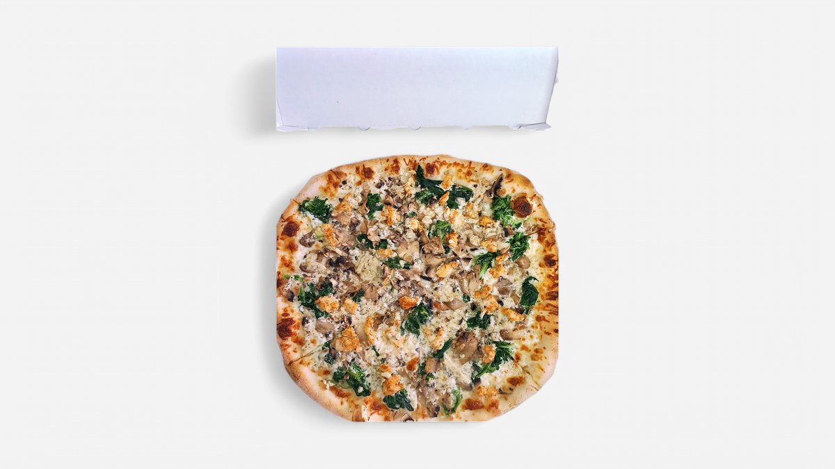 Smetana,mozzarella, žampiony, špenát, niva, kuře