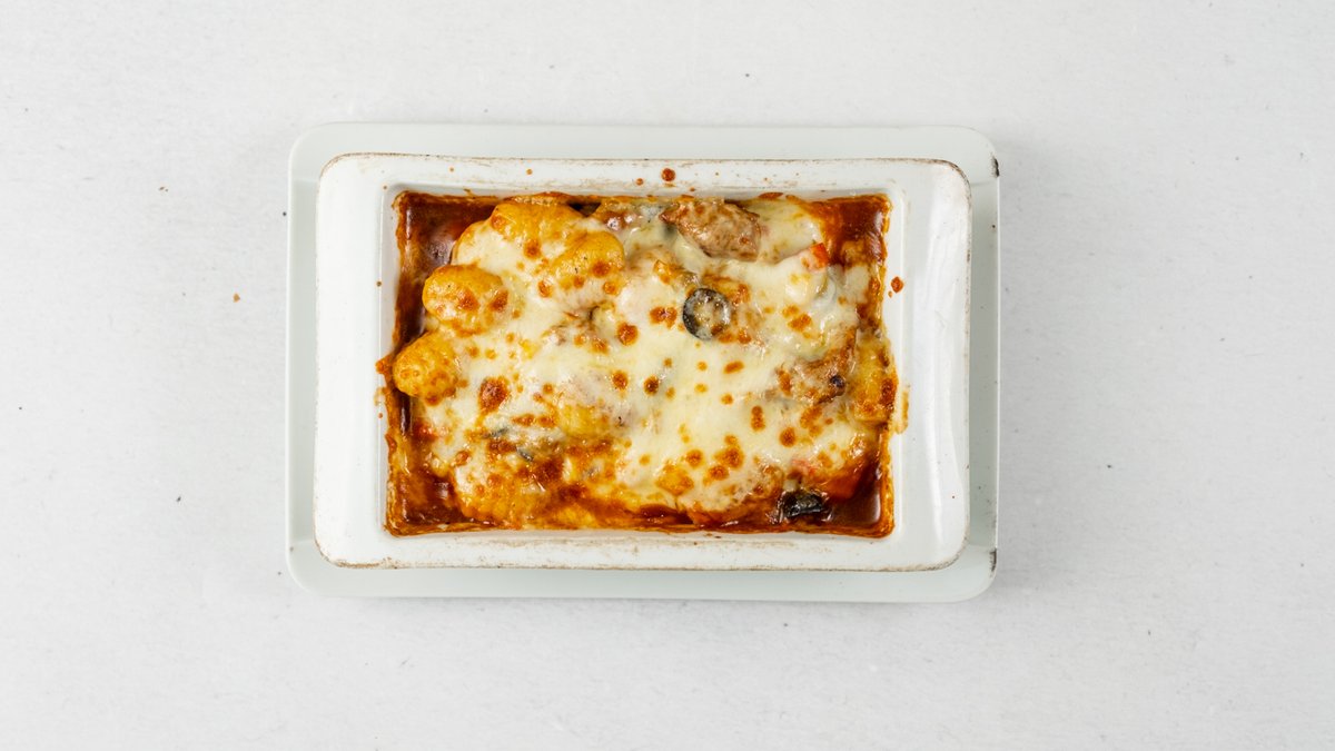 smetana, mozzarela, brambory, kuřecí maso, česnek, špenát (váha: 450g)