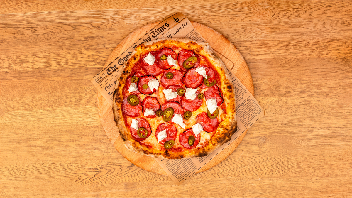 tomato, mozzarella, mascarpone, čorizo, jalapenos