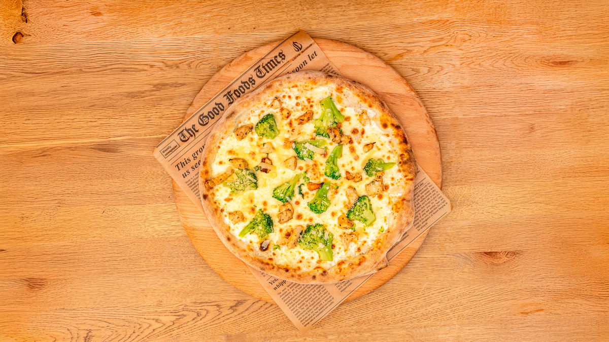 smetana, mozzarella, brokolice, kuřecí maso, parmezán