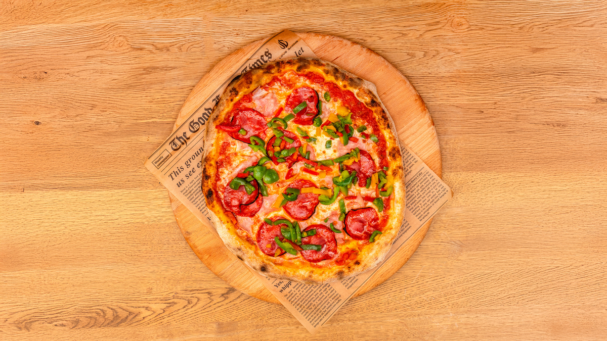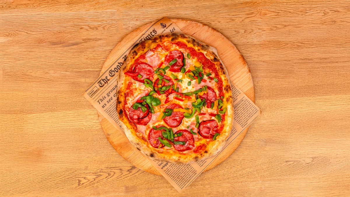 tomato, mozzarella, šunka od kosti, čorizo, paprika