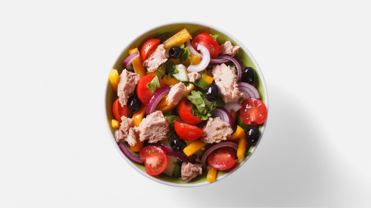 Tuňák, čerstvá zelenina, černé olivy, vejce, cizrna 350g