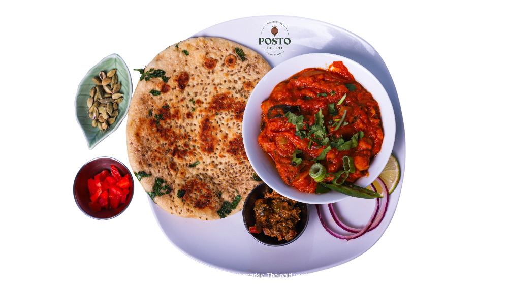 A hearty North Indian favorite—whole wheat flatbread stuffed with a spiced mashed potato filling, griddled to golden perfection. Served with tangy Indian pickle and a cooling yogurt raita (1)