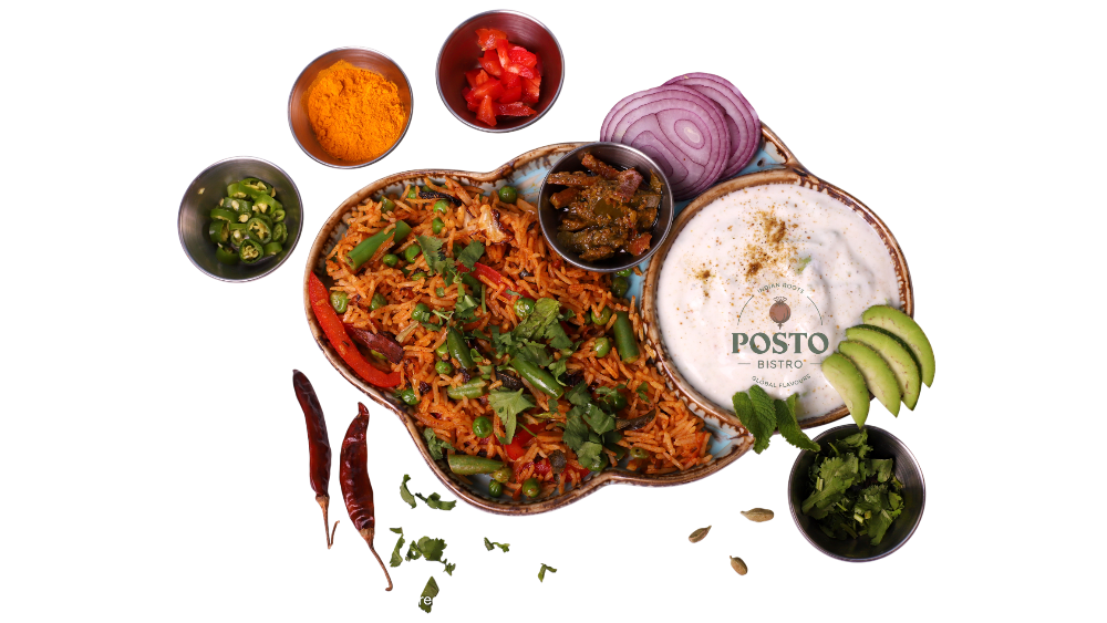 Spiced rice cooked with vegetables and a touch of tamarind. Paired with a cool avocado yogurt dip.(7)