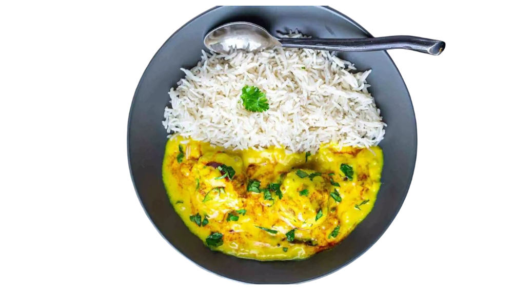 A North Indian comfort classic – steamed rice served with kadhi, a soothing yogurt-based curry tempered with spices and gram flour. Onion Bhajjis added for the extra punch