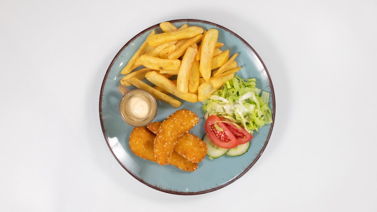 150g Smažený sýr s hranolkami julienne a naší tatarskou omáčkou (A1a,3,7,10)