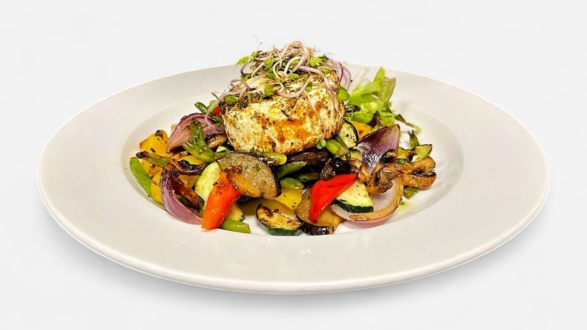 100g Grilovaný hermelín marinovaný v bylinkách s restovanou zeleninou