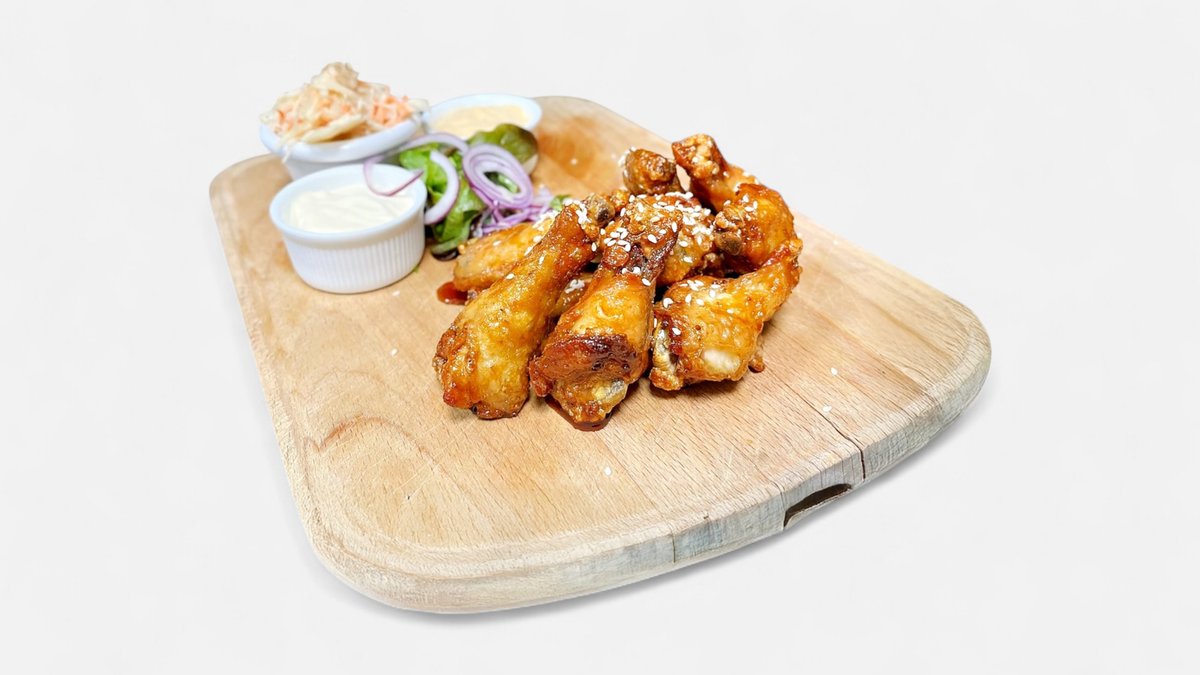 10ks BBQ wings / pečená kuřecí křídla v marinádě BBQ, česneková a chilli majonéza, coleslaw/ (A1a,3,6,7,9,10,12)