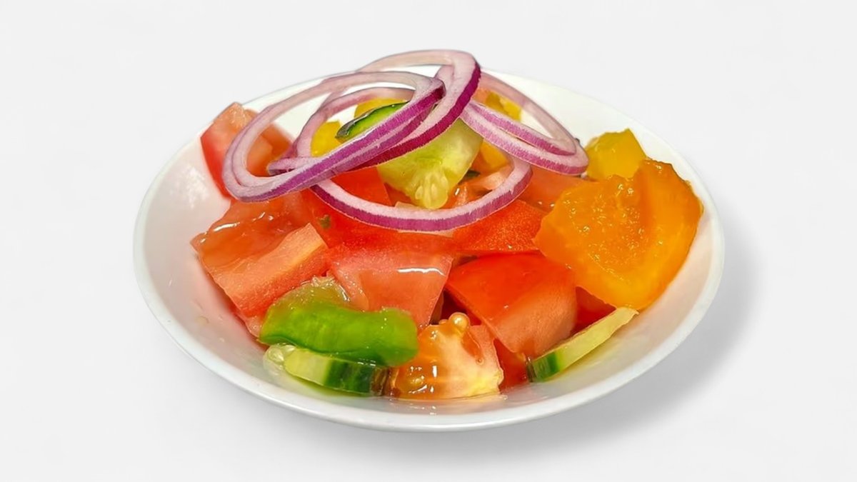 350g Velký šopský salát z okurek, rajčat, zálivkou vinaigrett a balkánským sýrem (A7,12)