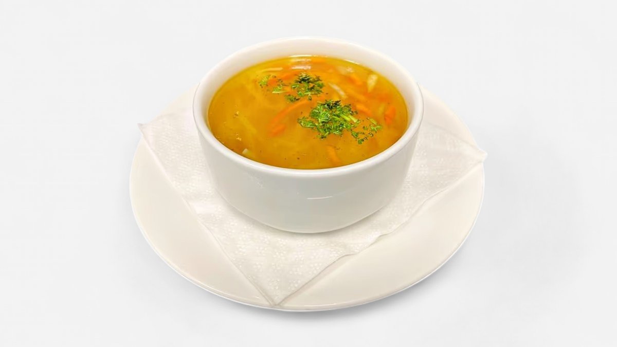 0,25l Kuřecí vývar s trhaným kuřecím masem, kořenovou zeleninou a nudlemi (A1a,3,7,9)