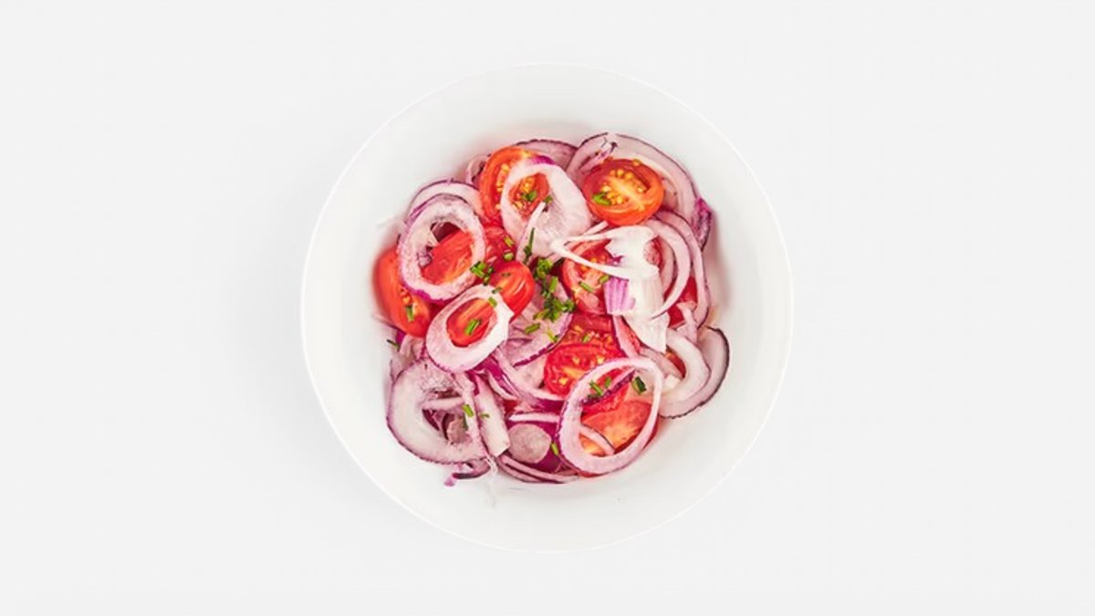 MALÝ RAJČATOVÝ SALÁT S CIBULKOU