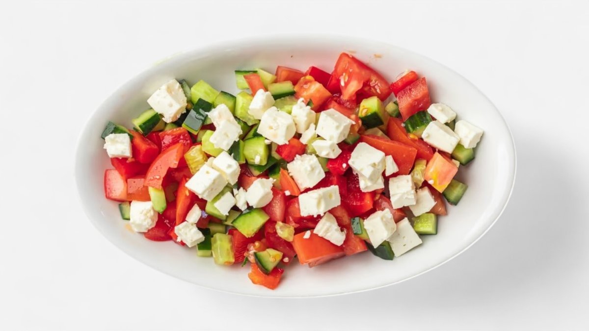 a medovým dresinkem, mix saláty rajčata, okurka, paprika