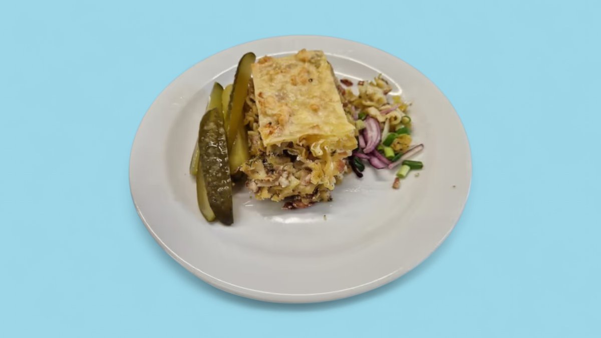 320g Zapečené těstoviny (šunkofleky), okurka