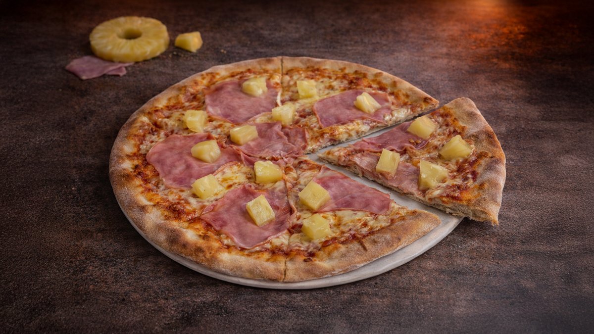 Tomato, šunka, mozzarella, ananas Tomatoes, mozzarella, bacon, egg