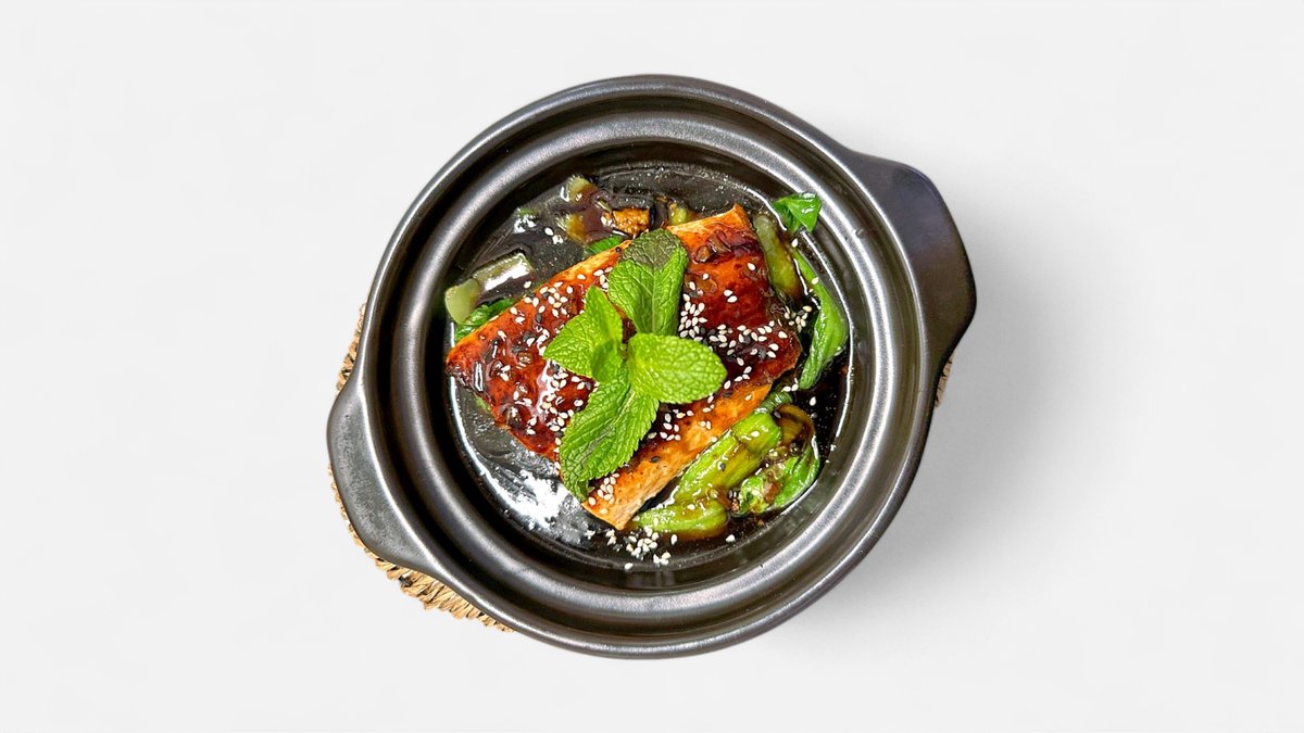 pak choi, grilovaný losos, sezam, teriyaki omáčka