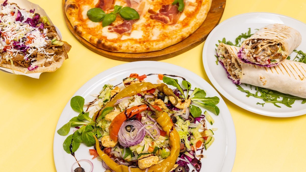 Salát, hranolky nebo rýže, extra maso, omáčka, sýr