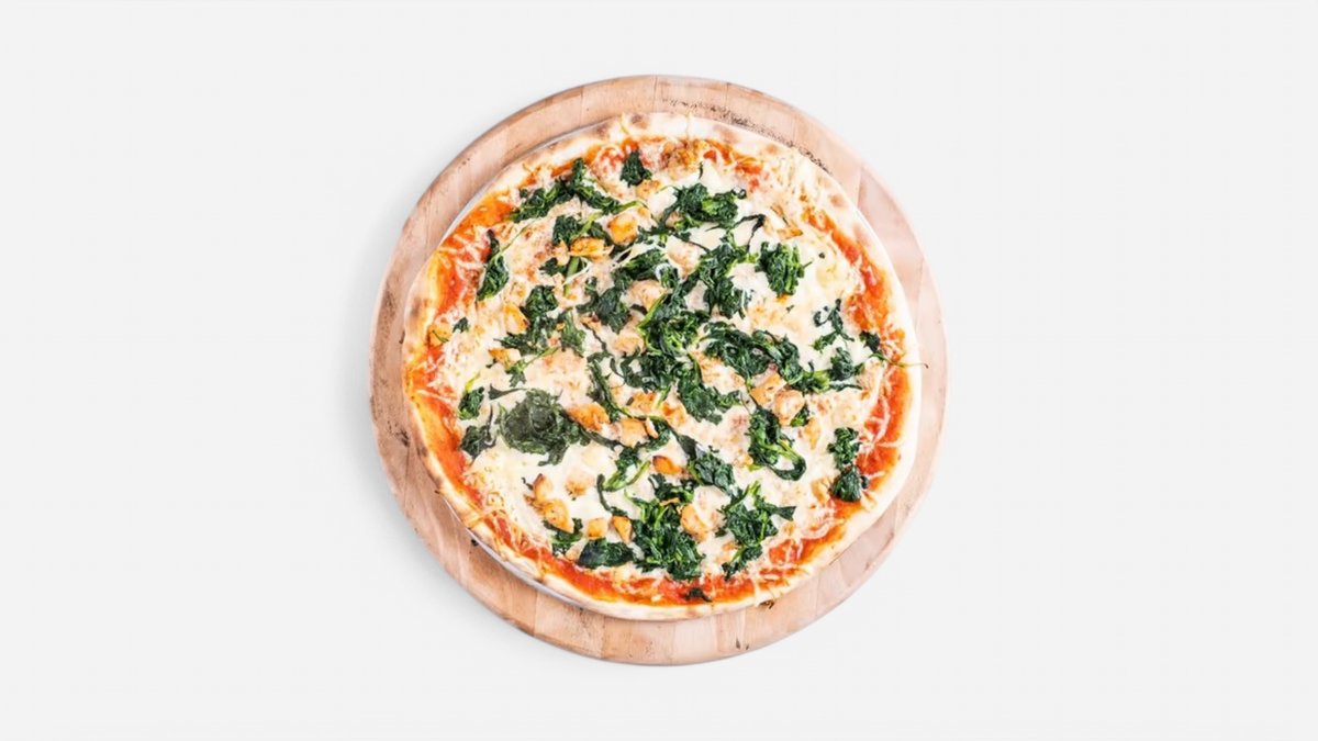 smetanový základ, mozzarella, kuřecí maso, niva, špenát
