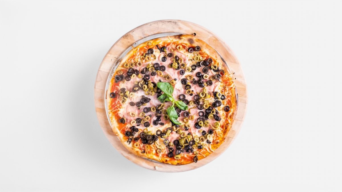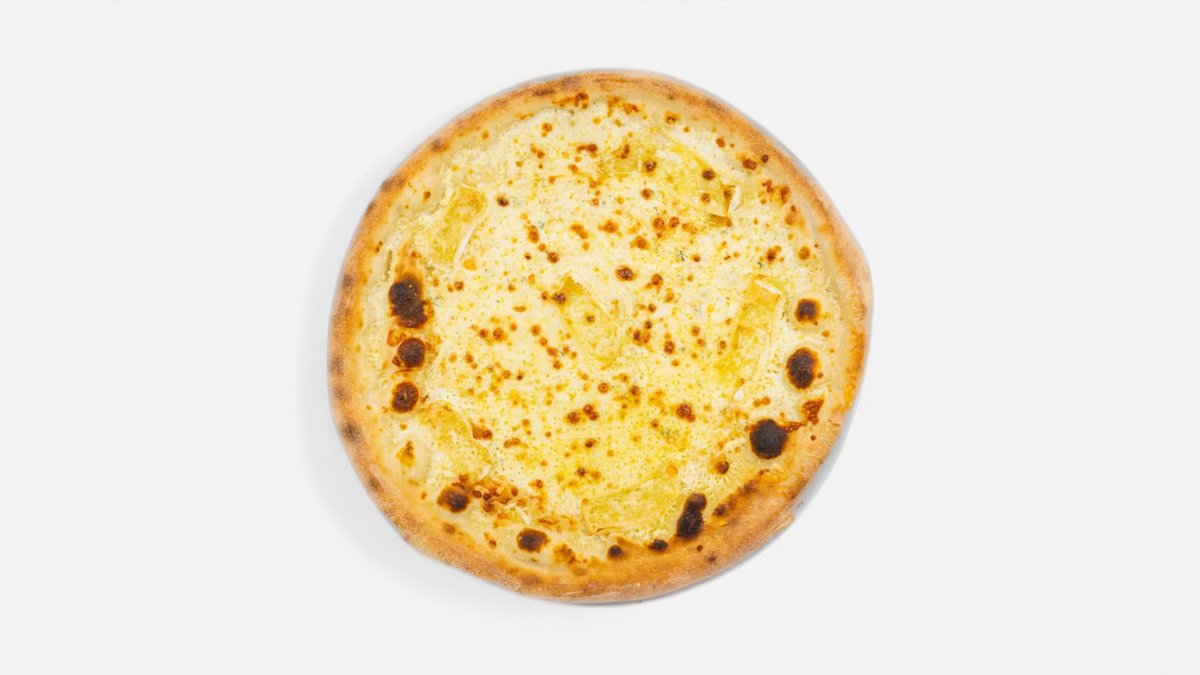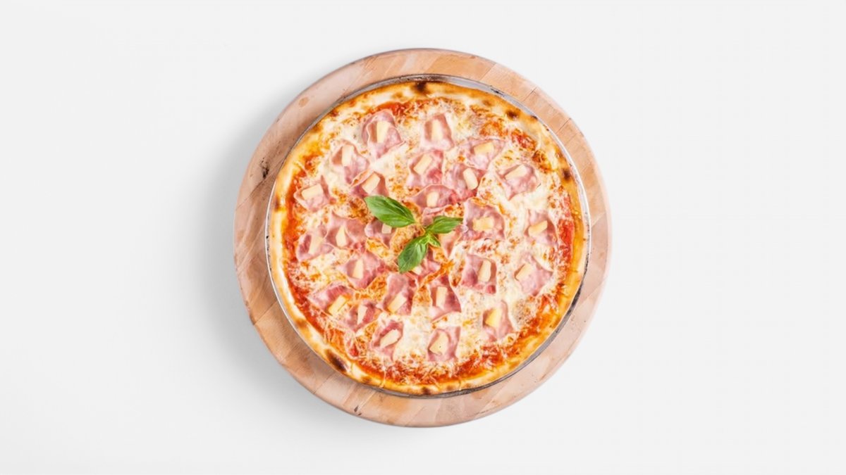 rajčatové sugo, ananas, šunka, mozzarella, olivový olej