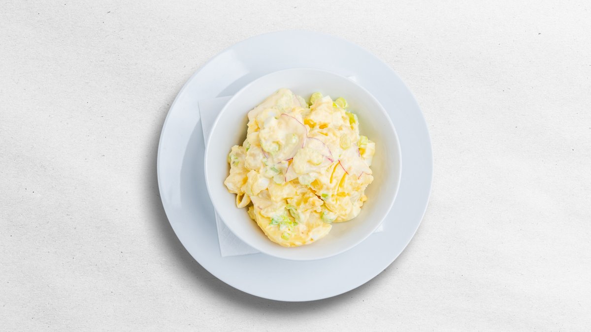 AMERICKÝ BRAMBOROVÝ SALÁT S ŘEDKVIČKAMI, MAJONÉZOU, CIBULÍ, CELEREM A VEJCEM