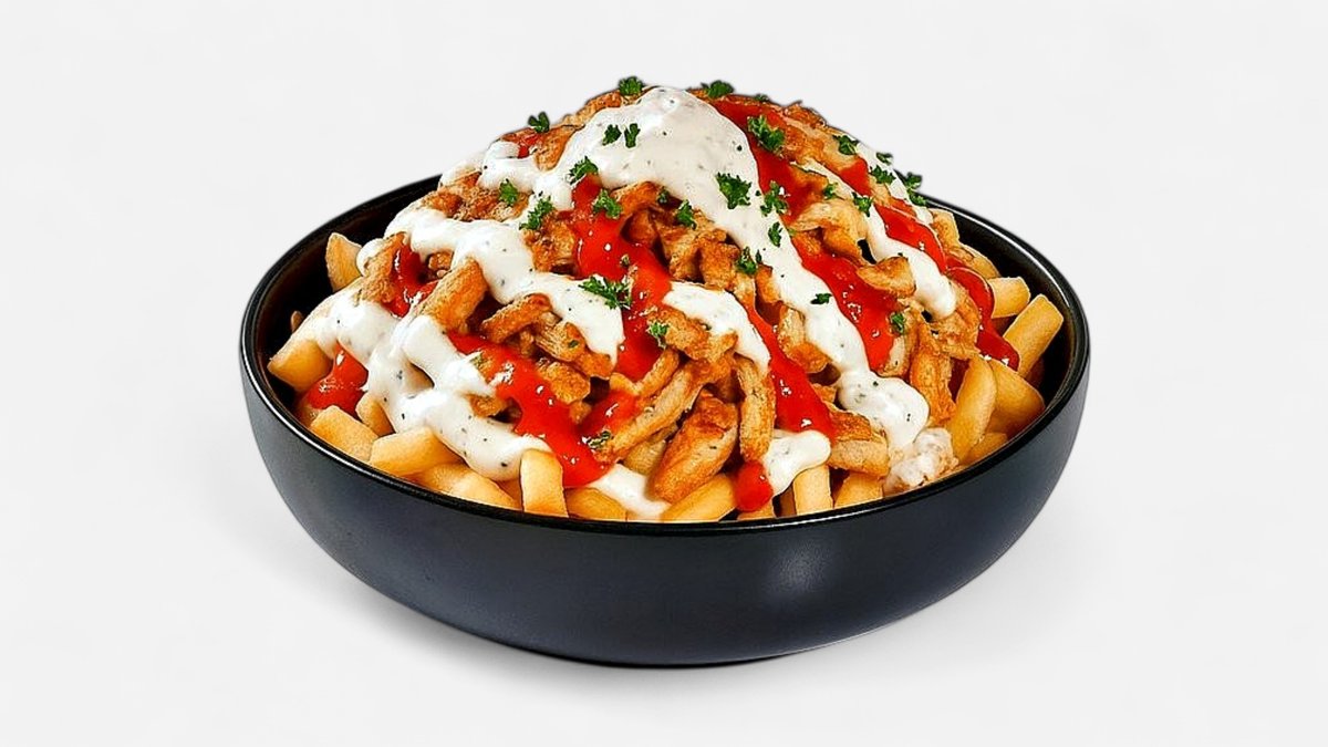 Objev Fries Fusion Bowl – lahodné spojení šťavnaté shawarmy a křupavých hranolků, vše pokapané naší tajnou omáčkou a BBQ omáčkou. Obohacené o balkánský sýr a posypané čerstvou petrželkou, tento pokrm nabízí jedinečnou kombinaci chutí a textur, která tě zaručeně nadchne.
