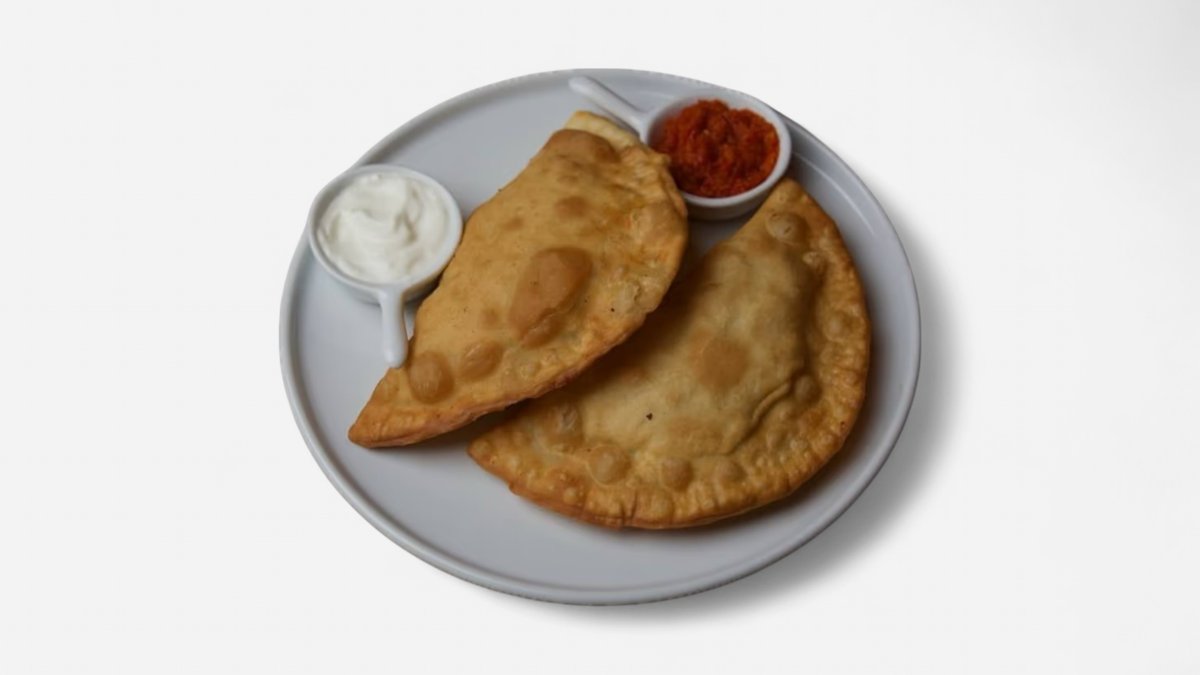2 čebureky z tenkého těsta s vepřovým masem. Podávají se s adjikou a zakysanou smetanou
