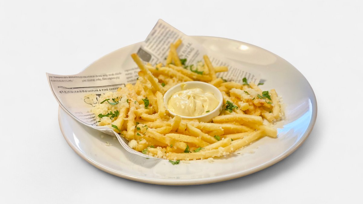 300 g Lanýžové hranolky – lanýžová majonéza, strouhaný Grana Padano, pažitka