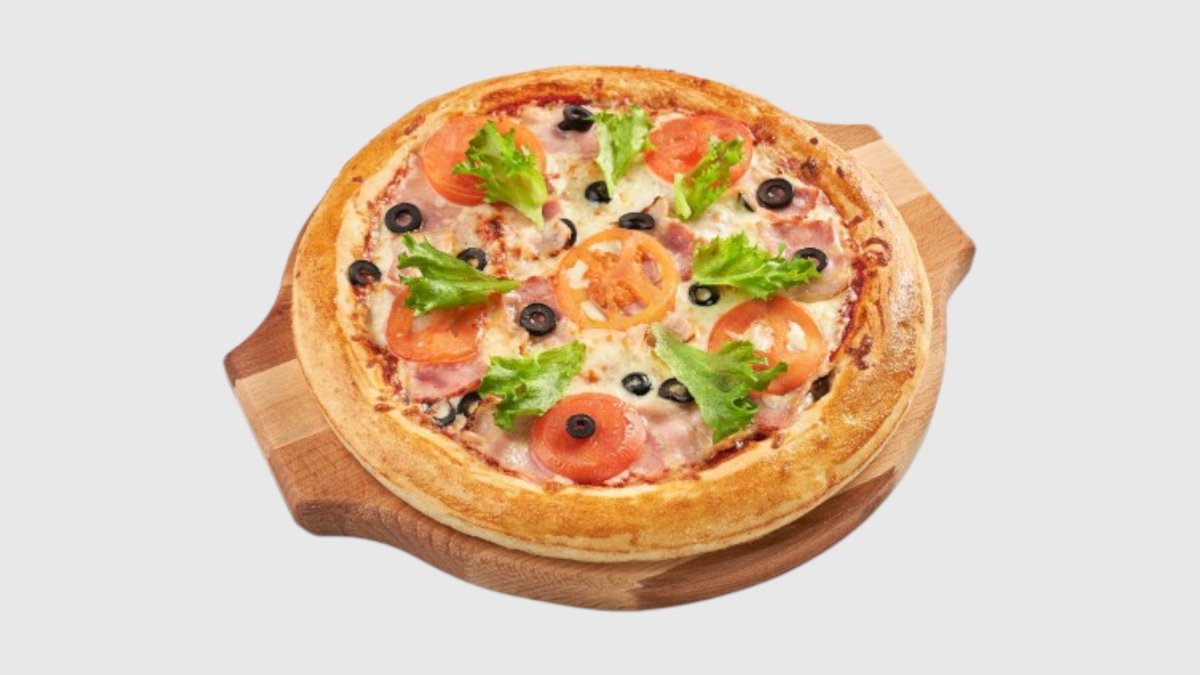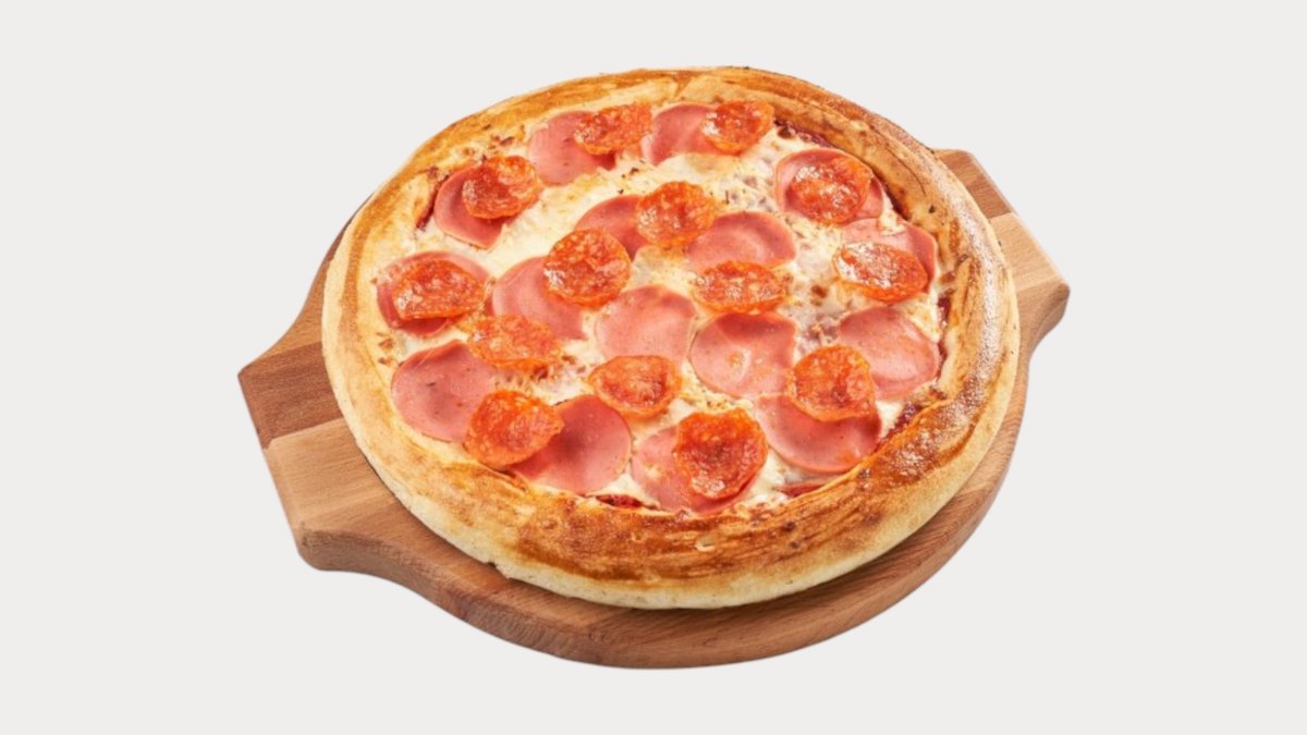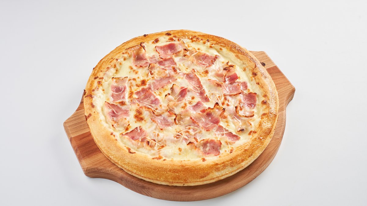 šunka, slanina, mozzarella, parmezán, smetanovo-hořčičná omáčka 30 cm