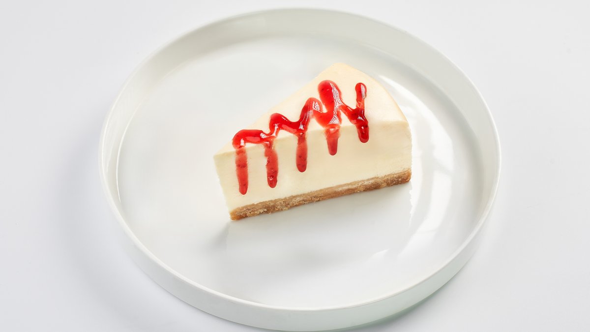 sušenkový základ, cream cheese, jahodová omáčka 150 g