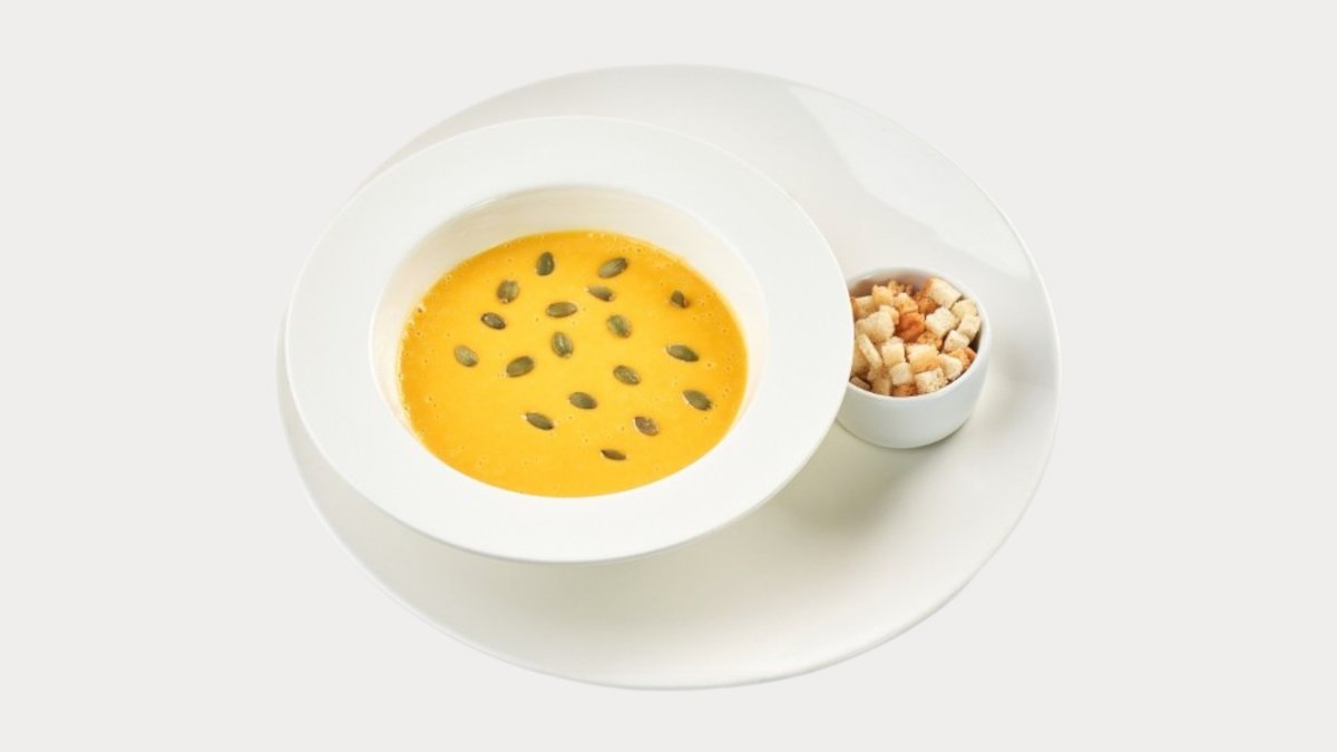 dýně, cibule, mrkev, brambory, smetana, krutony 300/15 g