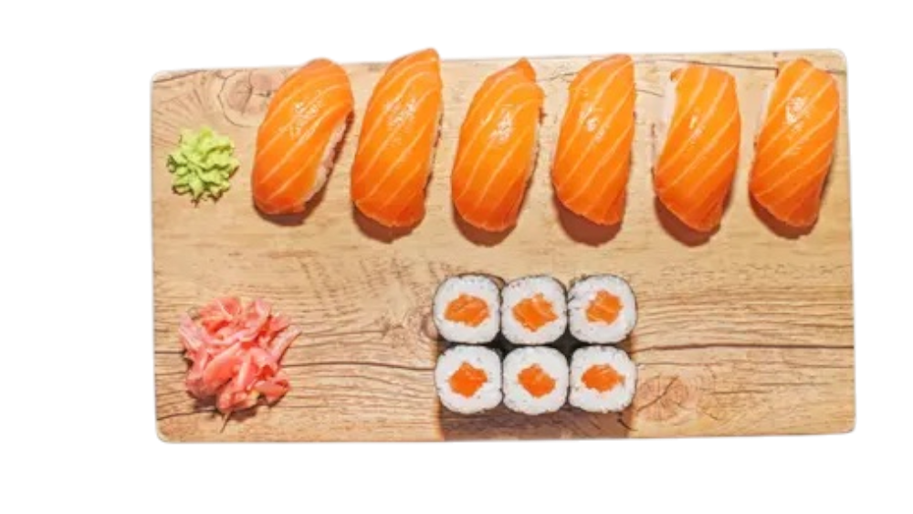 6x maki losos, 6x maki tuňák, 2x nigiri losos / tuňák.