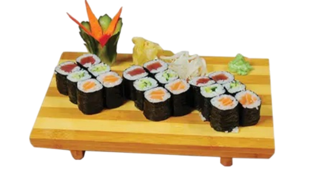 6x maki losos, 6x maki tuňák, 4x California losos s kaviárem.