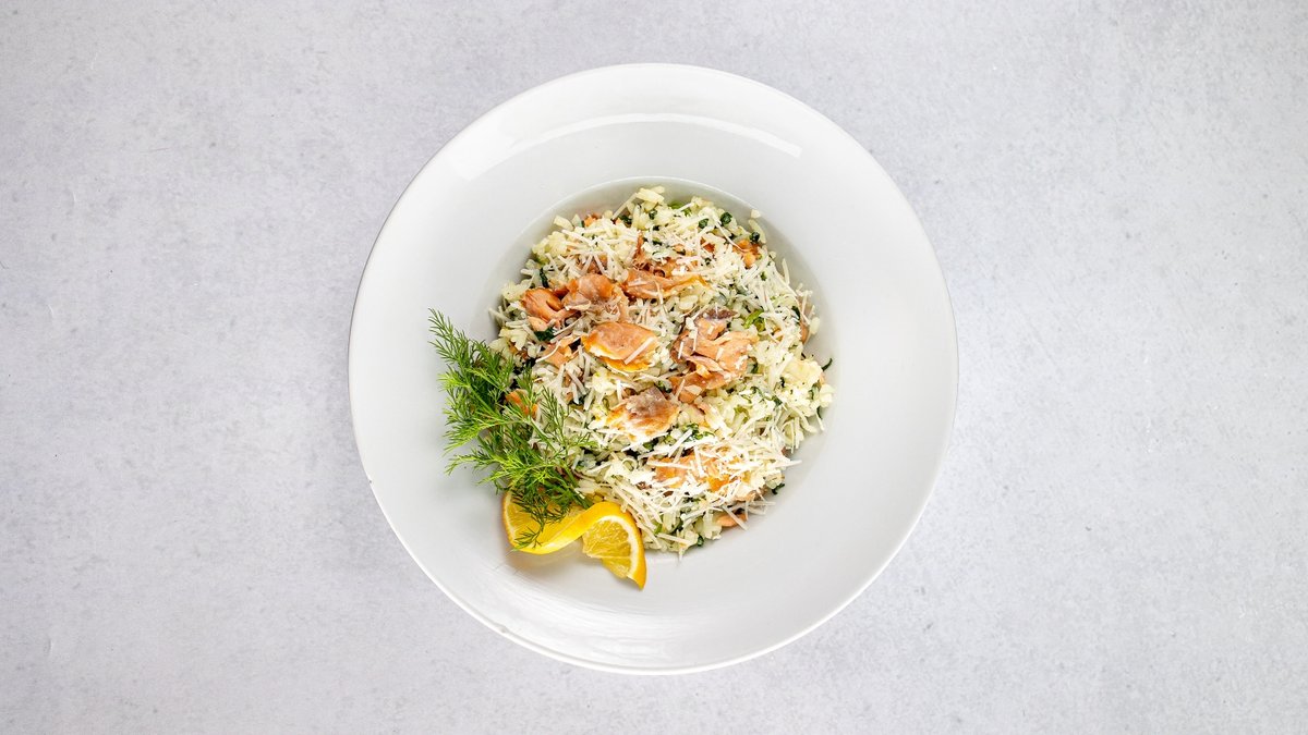 200 g | Krémové rizoto s lososem a špenátem