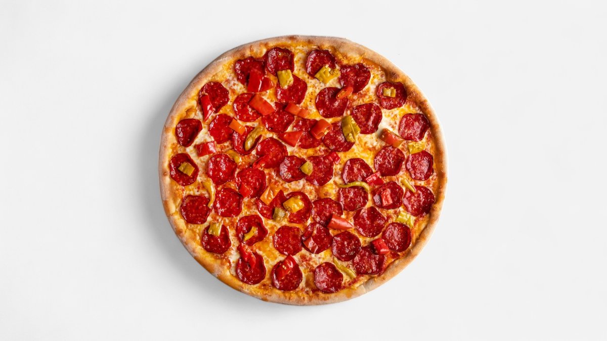Tomaty, sýr, pikantní salám, beraní rohy, feferony