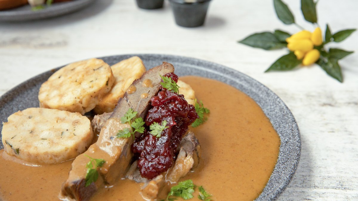 350g Kachní stehno s nádivkou, variace knedlíků a červené zelí