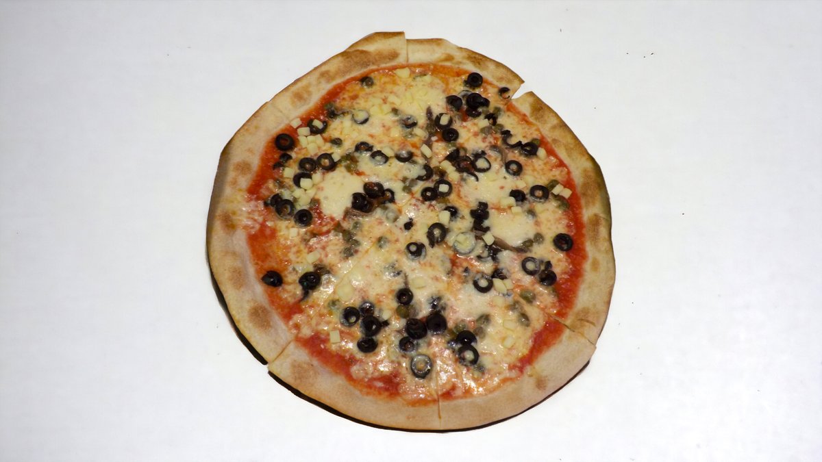 Tonno Rio Mare e Olive (ve vlastní šťávě) cca 33cmTENKÉ TĚSTO PRO 1-2 DOSPĚLÉ-