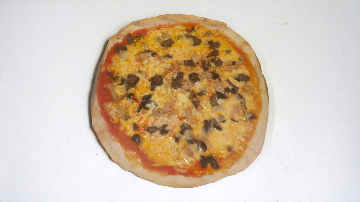 Tonno Rio Mare e Funghi (ve vlastní šťávě) cca 33cmTENKÉ TĚSTO PRO 1-2 DOSPĚLÉ-
