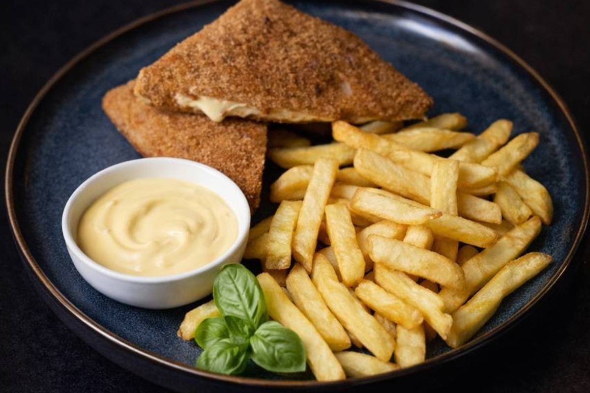 Kuřecí řízek, bramborová kaší nebo hranolky, citron
