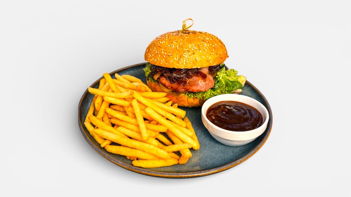 Борщ, сметана, грінки, сало, гірчиця, часник.