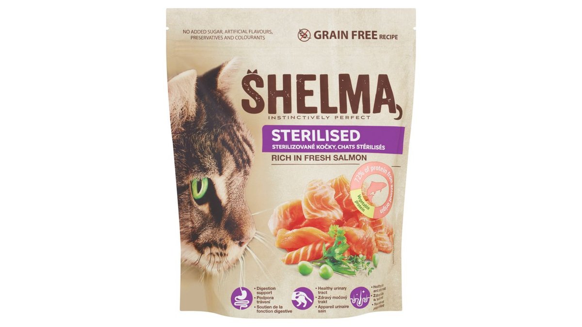 149,90 KčShelma Bezobilné kompletní krmivo pro sterilizované kočky bohaté na čerstvého lososa 750g