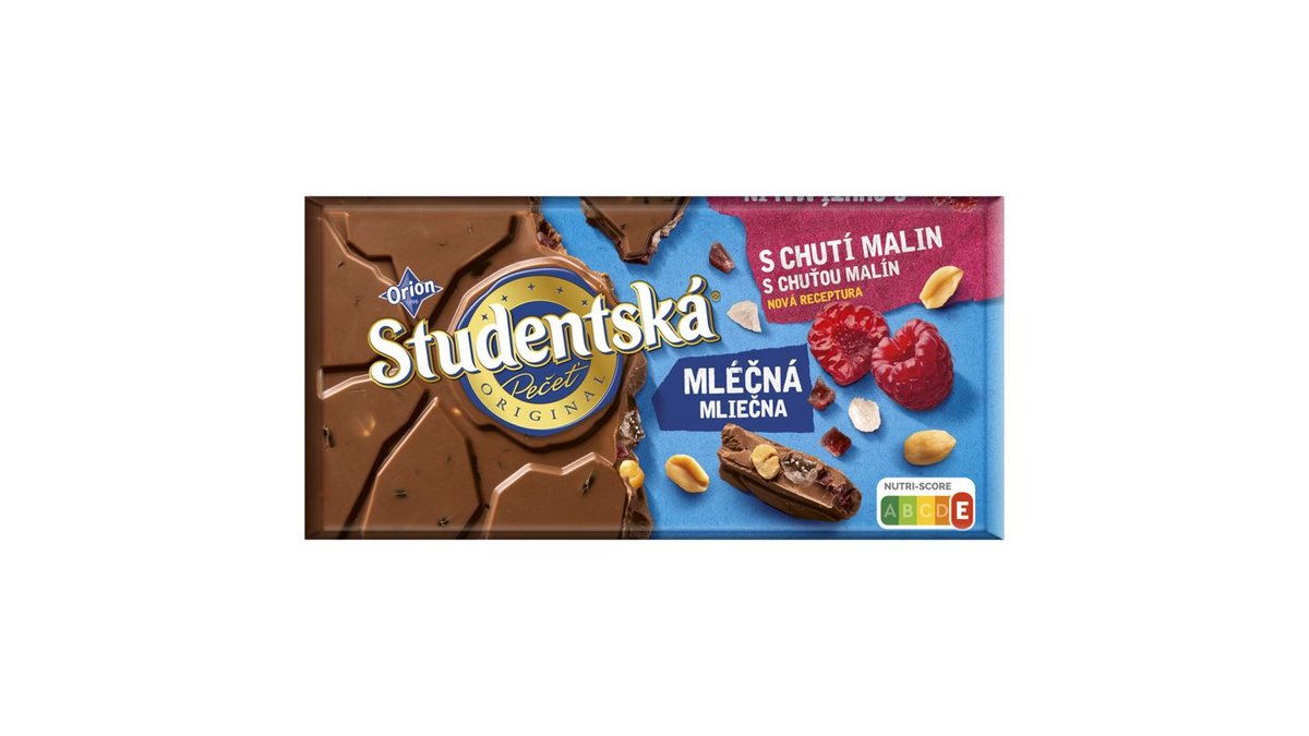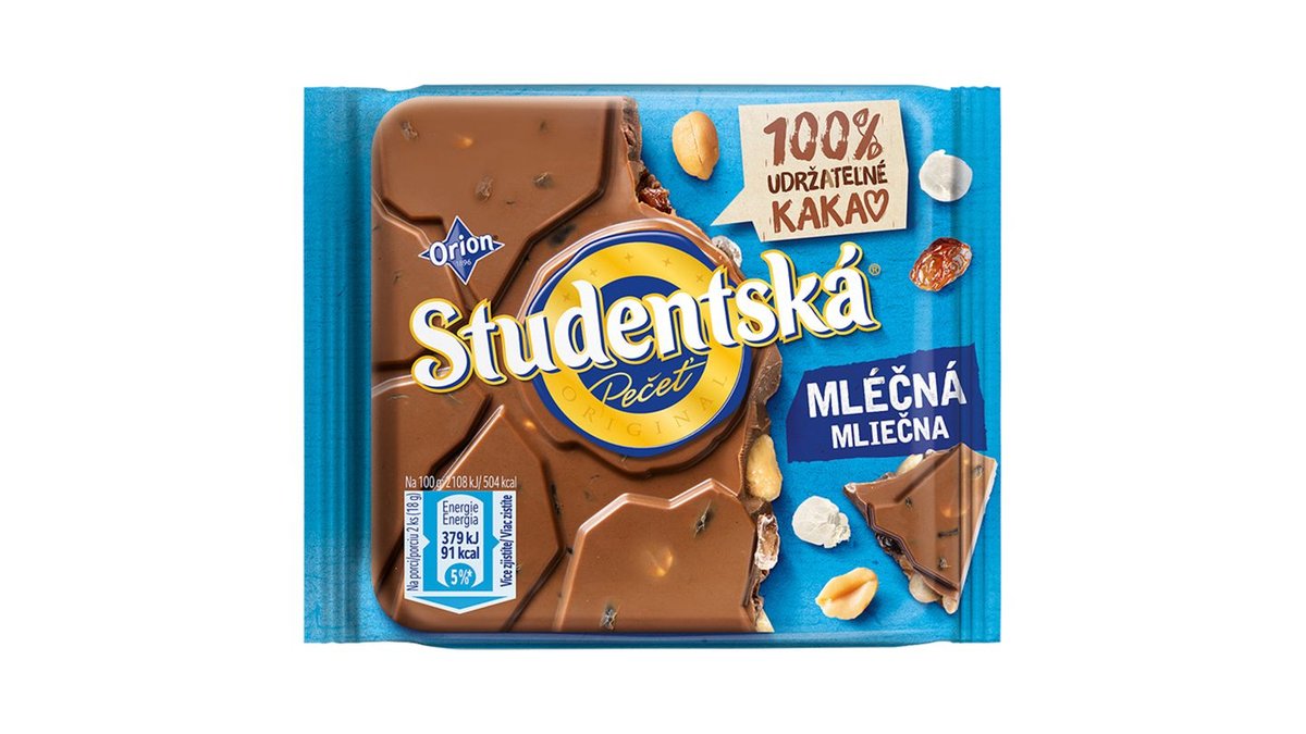 59,90 KčORION STUDENTSKÁ PEČEŤ mléčná čokoláda s arašídy, rozinkami a želé 90g