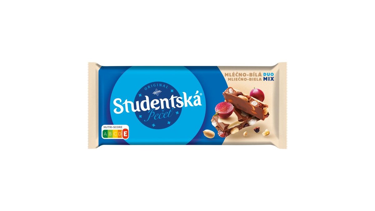 99,90 KčORION STUDENTSKÁ PEČEŤ mléčno-bílá čokoláda s arašídy, rozinkami a želé 170g