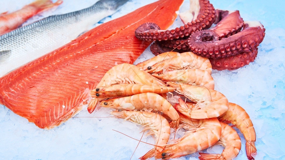 Čerstvé mořské a sladkovodní ryby, mořské plody a další delikatesy