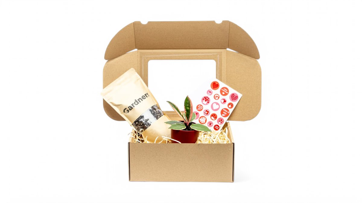 Dárková sada z lásky Peperomia caperata Rosso s květináčem a substrát