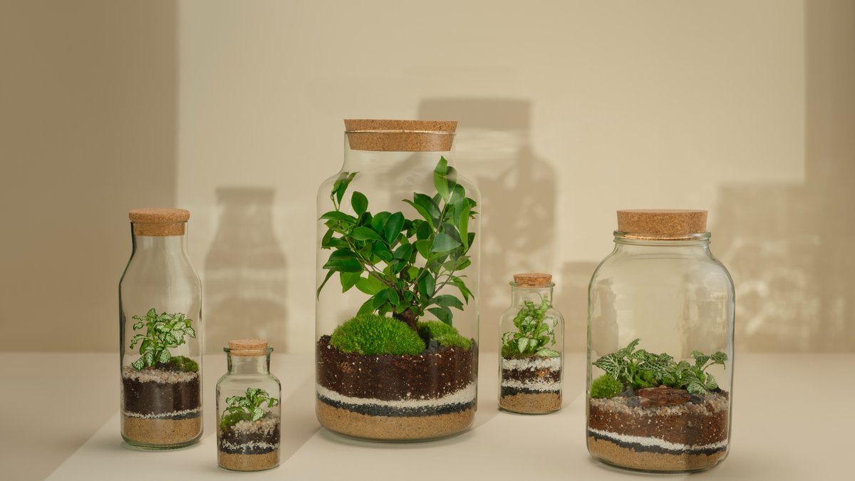 Naše nabídka rostlinných terárií, která stačí zalít pouze jednou ročně💧