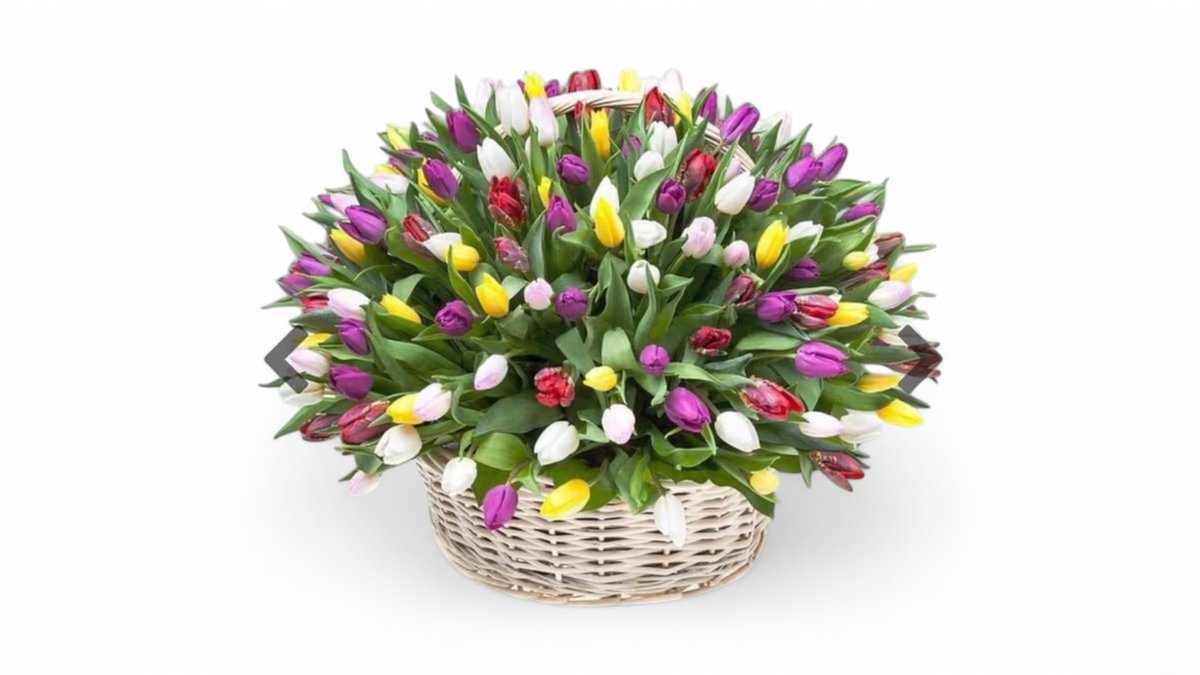 Tulipánuy v proutěném košíku 101 ks