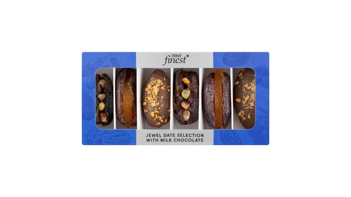 Tesco Finest Směs datlí v mléčné čokoládě a posypaných marakujovým granulátem 150g