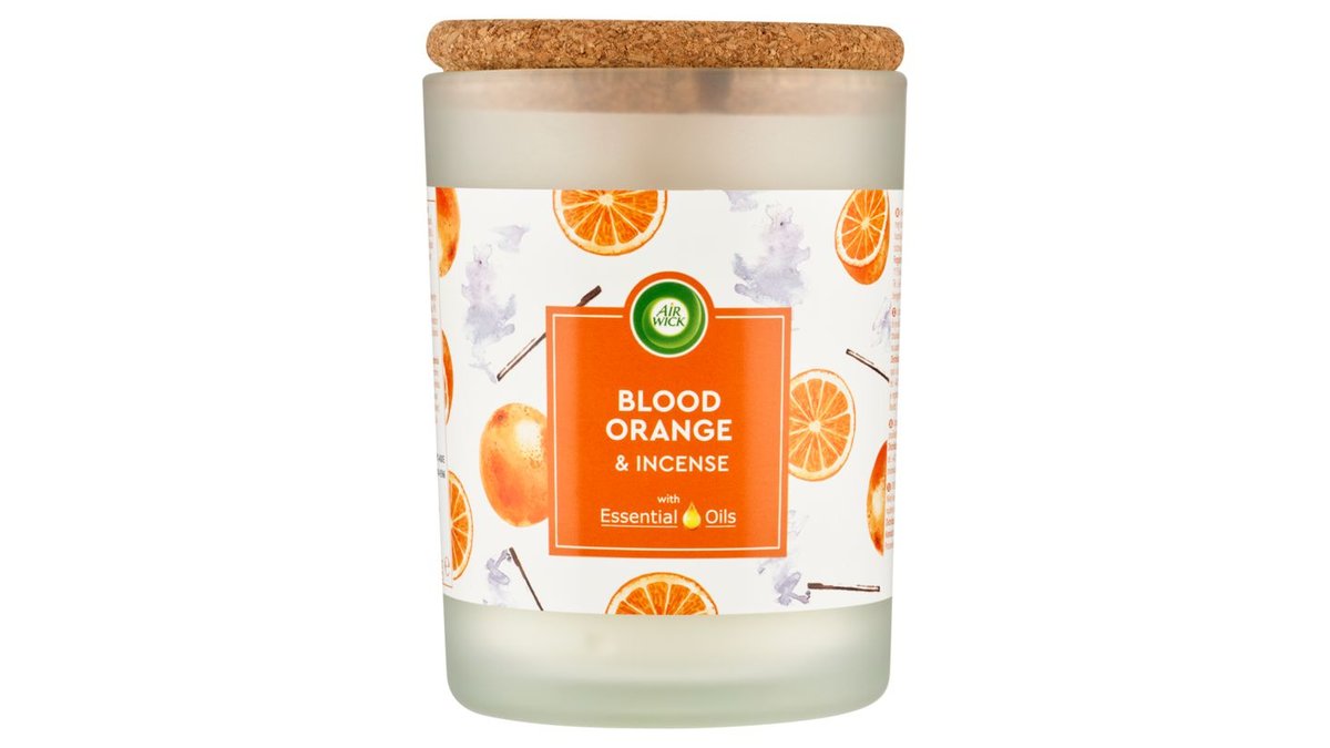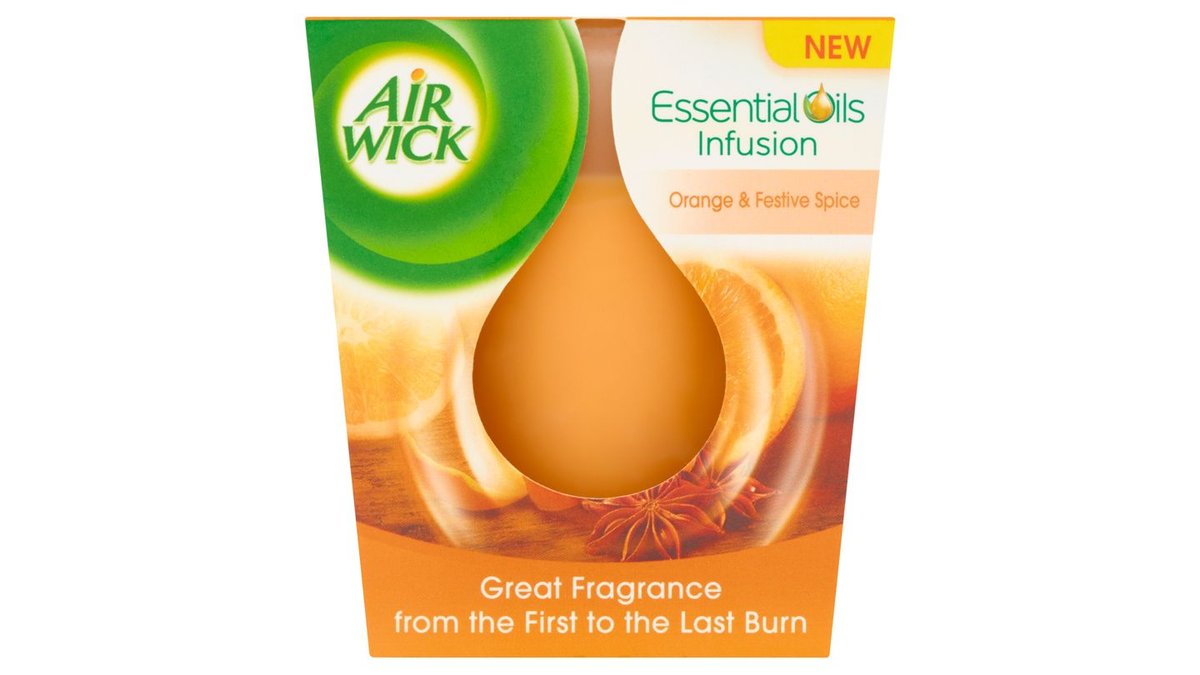 Air Wick Essential Oils Svíčka pomeranč a sváteční koření 105g