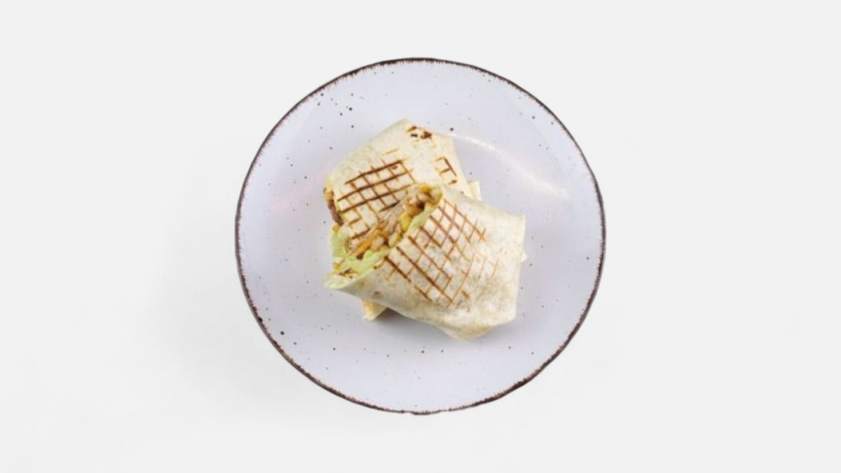 kuřecí maso 120g, sýr, salát, dresing, tortilla (1, 3, 7
